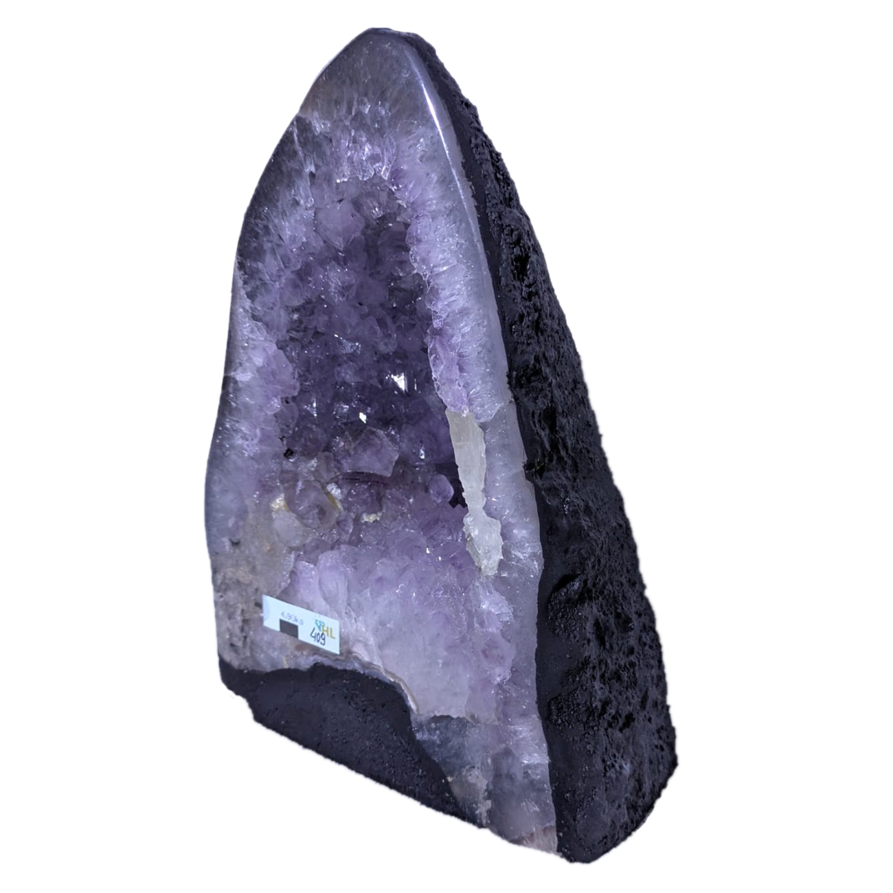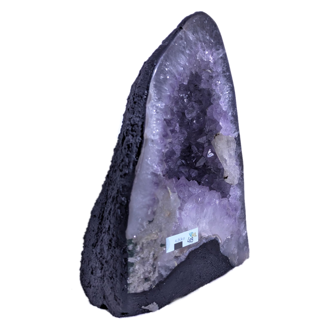 Diese eher kleinere Amethystdruse aus Brasilien hat schöne funkelnde Kristalle und eine sehr ansprechende Form. Ihre Kristallhöhle eignet sich auch als Lade-Geode für andere Steine.