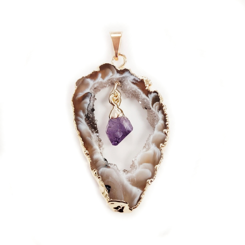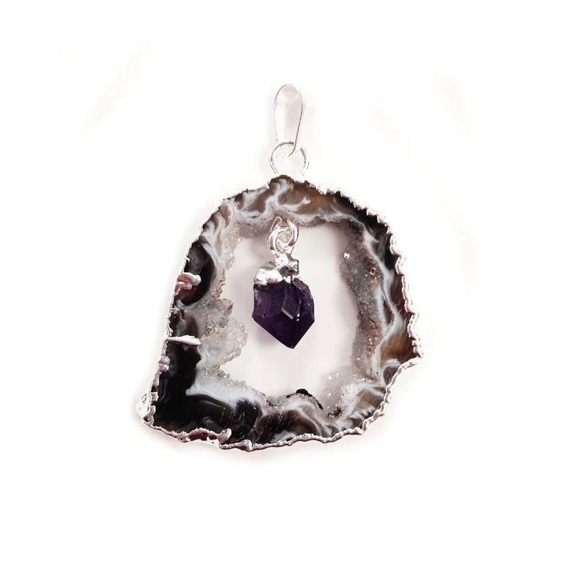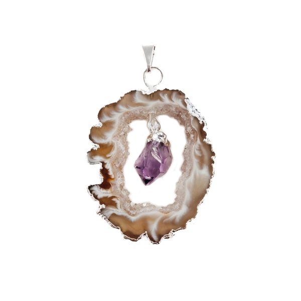 Anhänger Achatdrusenscheibe mit Amethystkristall