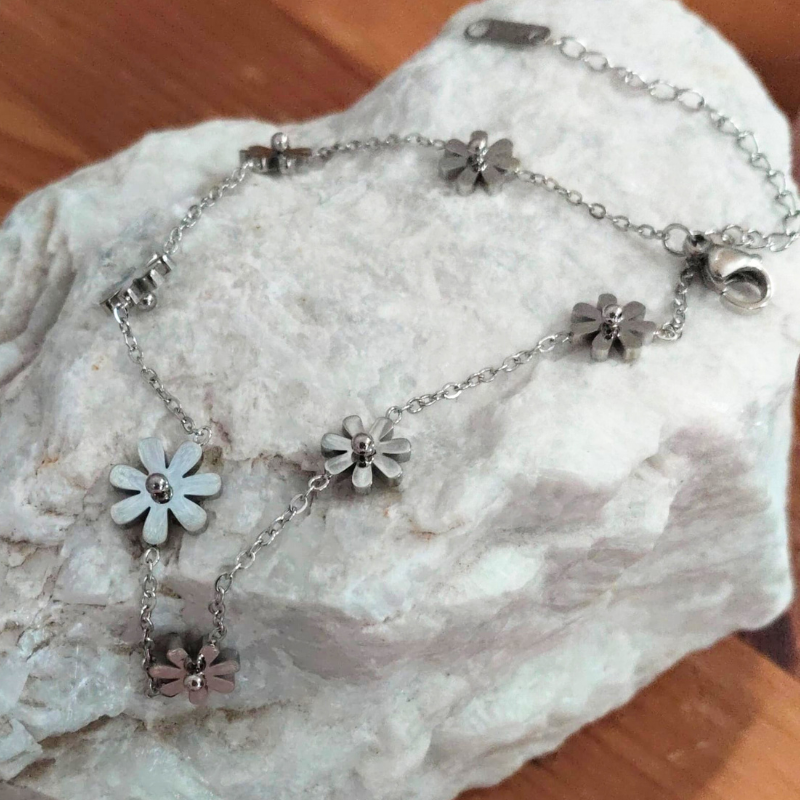 Entzückendes Fußkettchen mit 7 Blümchen – dein perfekter Begleiter für sonnige Tage