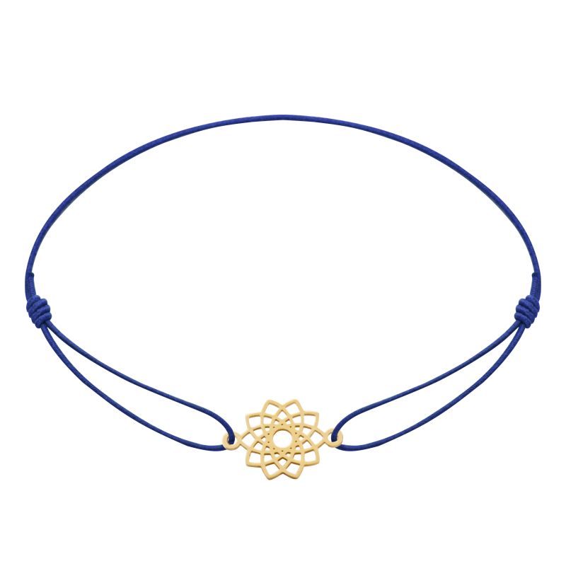 Zauberhaftes Armband mit Symbol in Form einer 10-blättrigen Blüte. Durch das elastische Band und die verstellbaren Knoten ist das Armband flexibel in der Länge verstellbar.