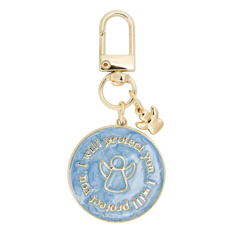 Symbol mit Bedeutung – Emaille-veredelter Schlüsselanhänger mit einem kleinen Schutzengel-Charm und den Worten