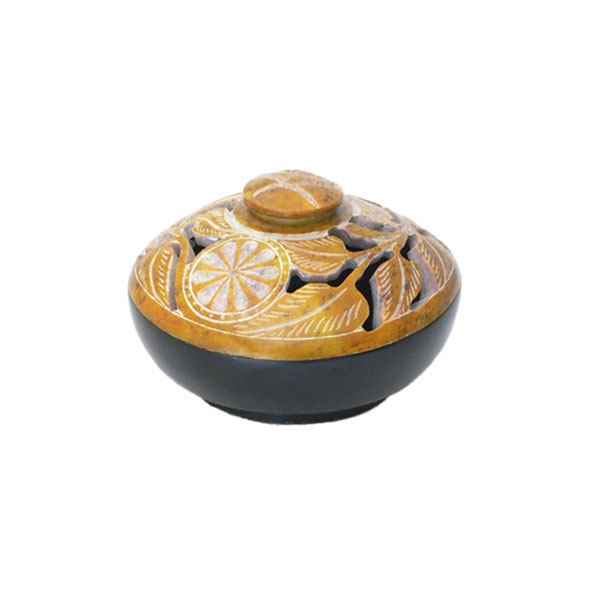 2-färbige Räucherdose für Räucherkegel oder Räucherstäbchen (der Deckel dient als Räucherstäbchenhalter). Mit Sand gefüllt kann die Schale auch zum Räuchern mit Kohle verwendet werden.