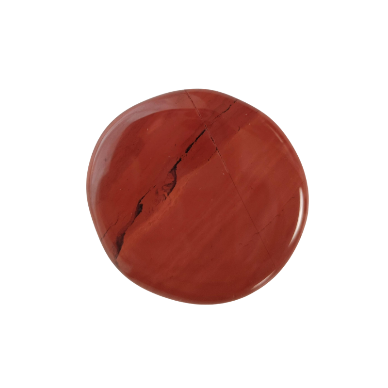 Chakrasteine sind flach geschliffene (Halbedel-)Steine, die sich besonders gut zum Auflegen auf den Körper eignen. Diese Jaspise haben die charakteristische ziegelrote Farbe, zum Teil mit faszinierender Zeichnung, die durch den Schliff besonders gut zur Geltung kommt.