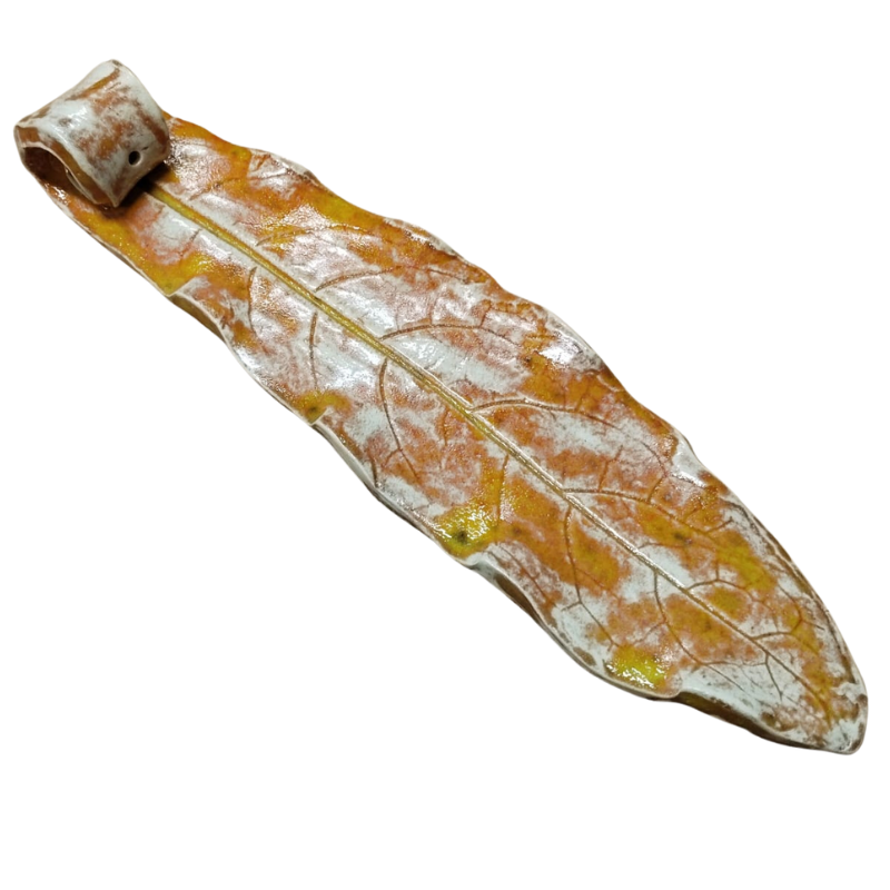 länglicher Räucherstäbchenhalter aus Keramik in natürlicher Blattform