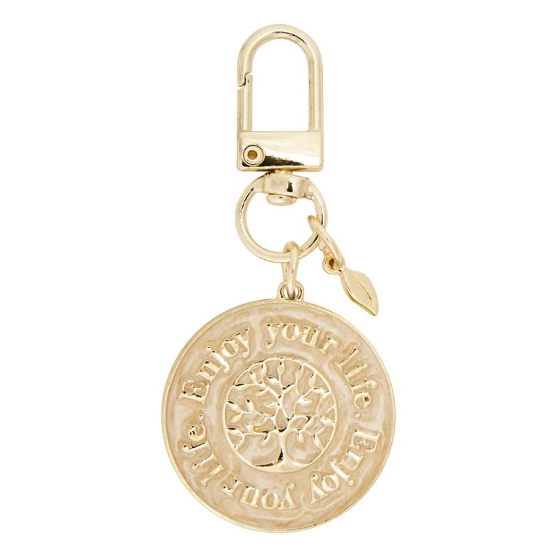 Symbol mit Bedeutung – Emaille-veredelter Schlüsselanhänger mit einem kleinen Blatt-Charm und den Worten