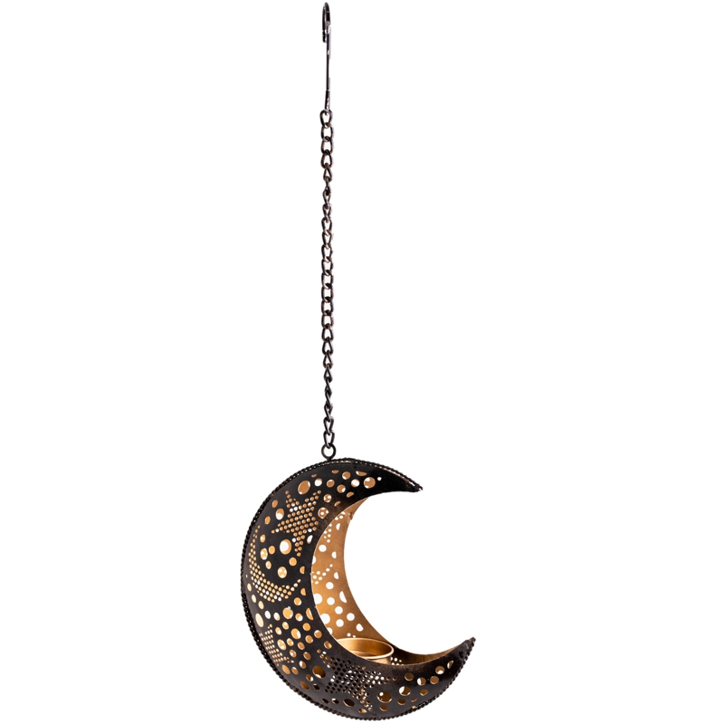 Orientalisches Licht in Mondform für magische Momente. Wird mit Kette zum Aufhängen geliefert, passend für Teelichter.