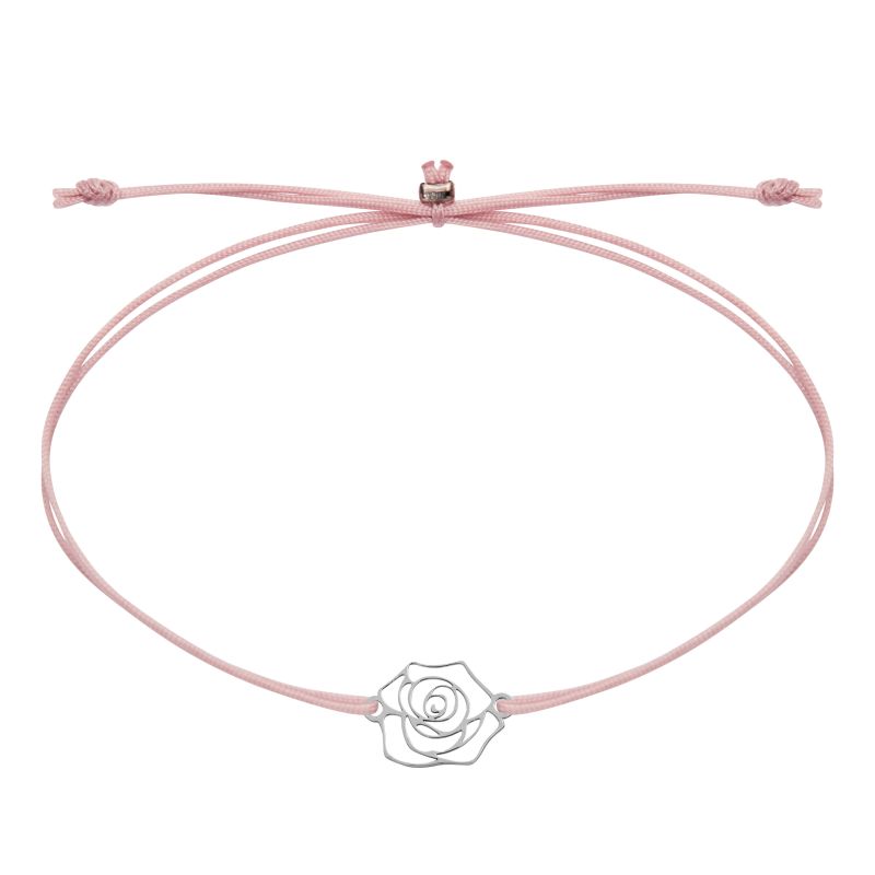 Geschmackvolles, schlichtes Armband mit Rosenblüten-Symbol. Das Armband kann durch Ziehen an den Enden beliebig in der Größe verstellt werden.