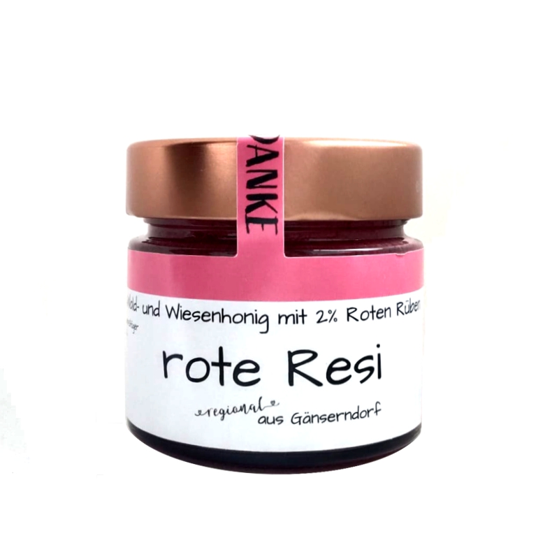 Der Rote Resi Honig hat den typischen Roten Rüben-Geschmack und passt sehr gut zu einer Käseplatte, aber auch auf einem Butterbrot kommt der Geschmack gut zur Geltung. Der leicht erdige Geschmack der Roten Rübe und die Süße dieses Honigs passen perfekt zusammen und ergeben ein einzigartiges Geschmackserlebnis.