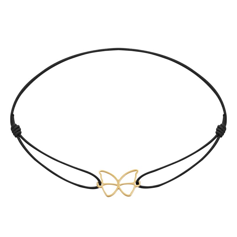 Zauberhaftes Armband mit Schmetterling-Symbol. Durch das elastische Band und die verstellbaren Knoten ist das Armband flexibel in der Länge verstellbar.