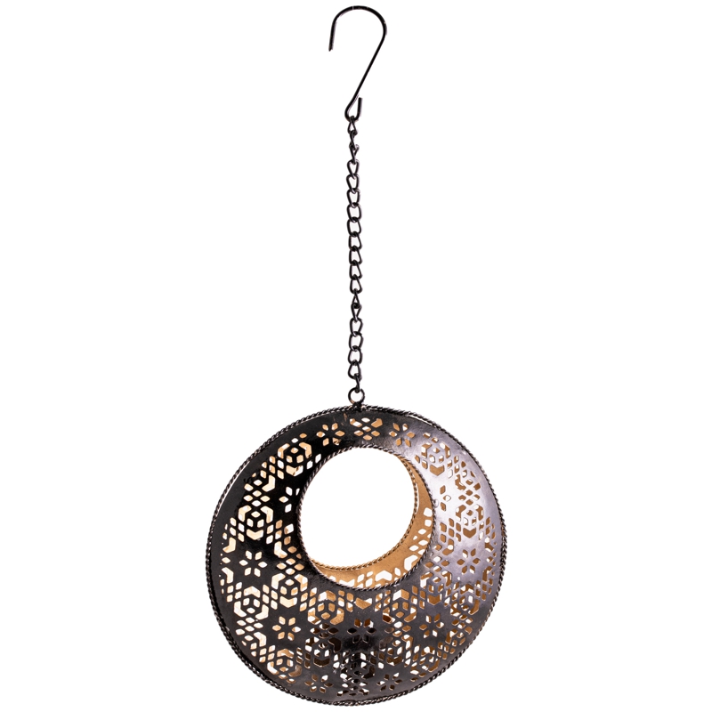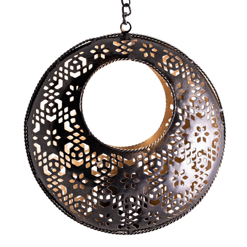 Orientalisches Licht in runder Form für strahlende Momente. Wird mit Kette zum Aufhängen geliefert, passend für Teelichter.