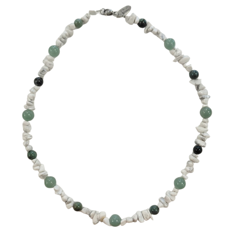 Stein-Kette aus einer Kombi von Splittern und Kugeln, gefädelt auf Edelstahl-Schmuckdraht