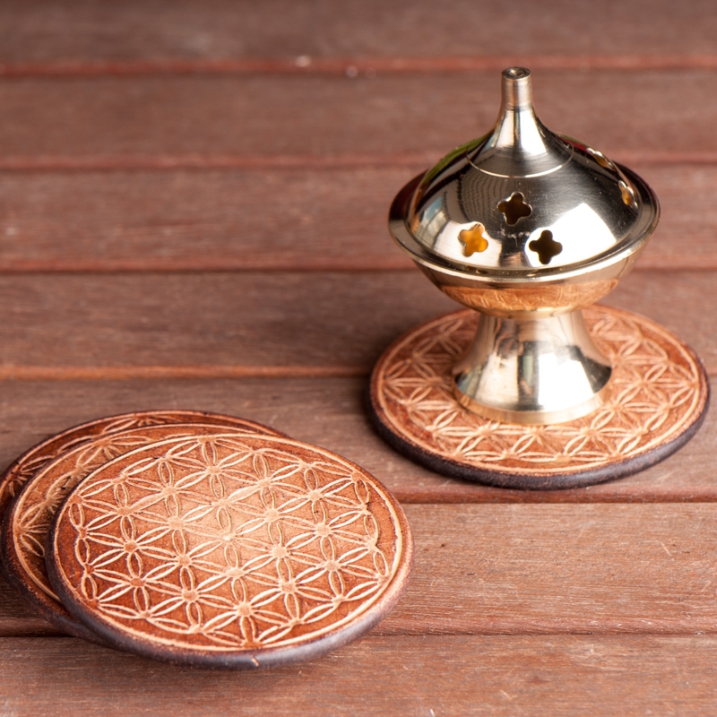 Diese Untersetzer aus Holz sind bestens für alle Gefäße bis ca. 7 cm Bodendurchmesser geeignet. Durch die eingravierte Blume des Lebens bekommt die Räucherung zusätzliche Kraft und den entsprechenden geschützten Rahmen.